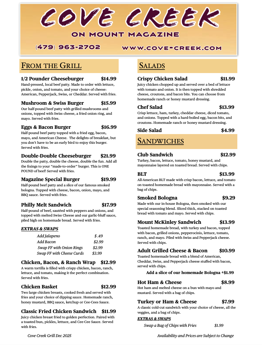 Lunch & Dinner Thur, & Fri 11am - 9pm