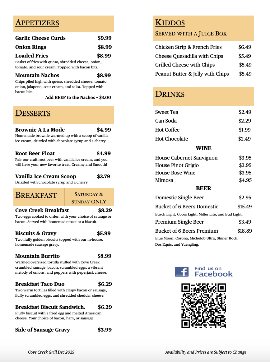Breakfast, Lunch & Dinner Sunday 9am - 7pm